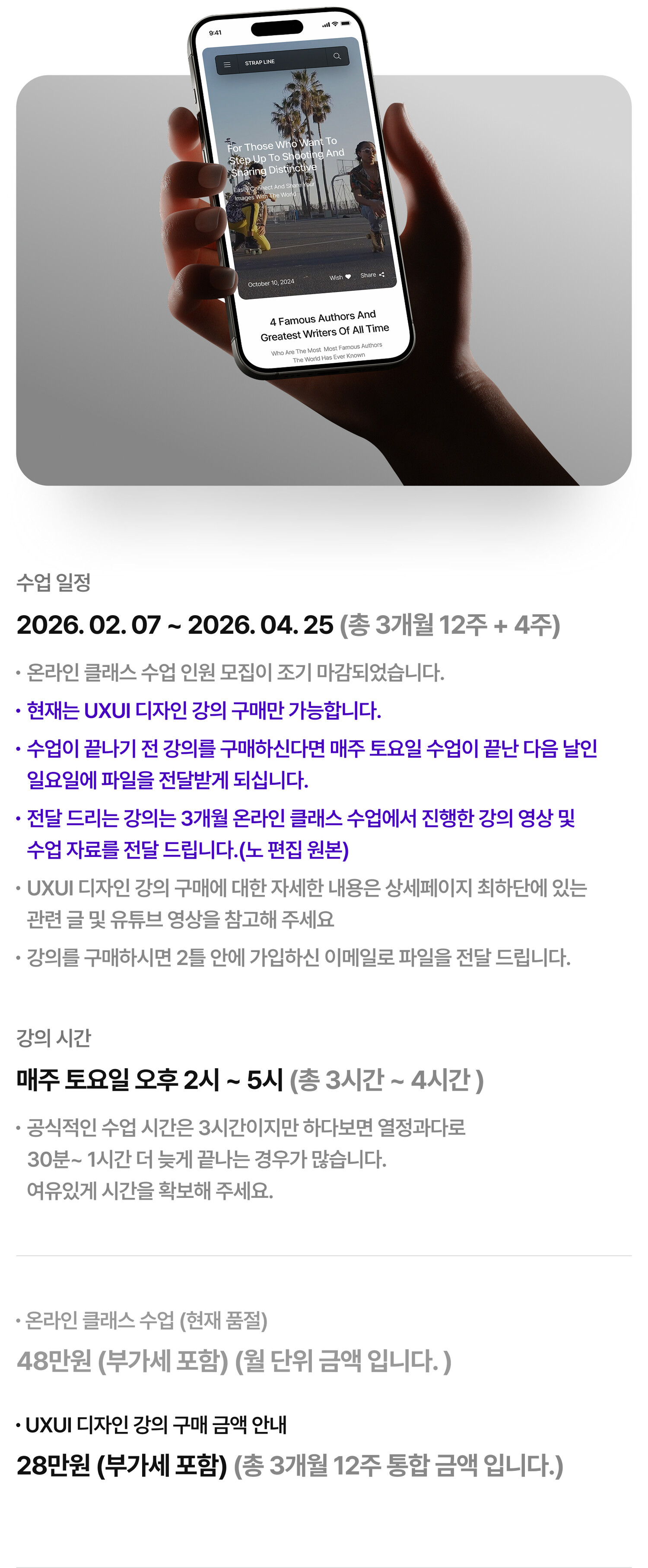 현재는 UXUI 디자인 강의 구매만 가능합니다.