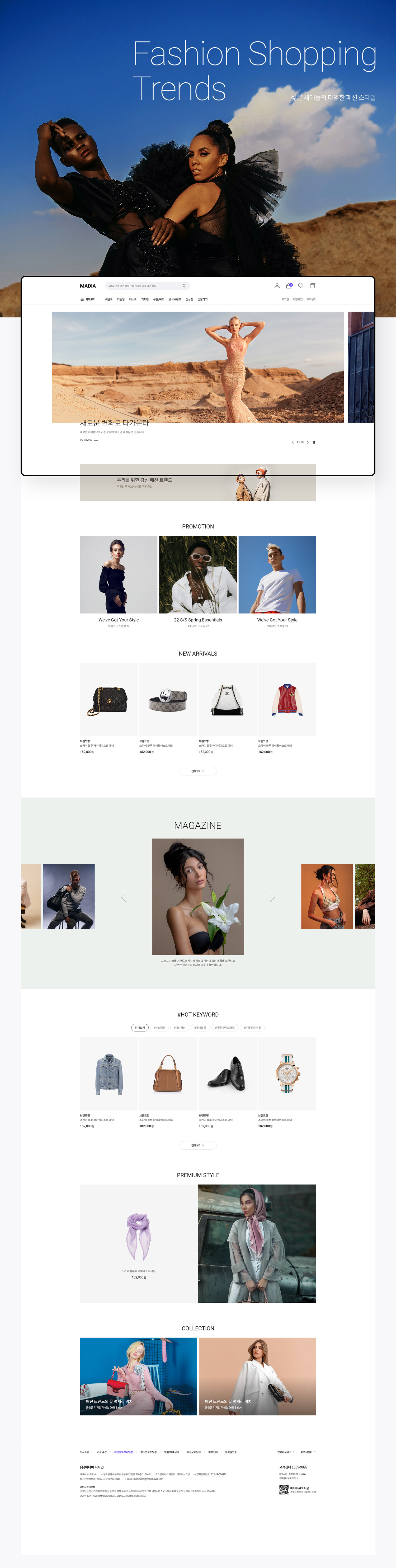 과감한 썸네일 사용으로 메인에서 쇼핑을 하는데 이미지로 시선을 사로 잡으며 일반적인 쇼핑몰로 많은 정보를 깔끔하게 잘 정리해 메인 부터 서브까지 간결한 톤앤매너를 유지하는 것이 특징