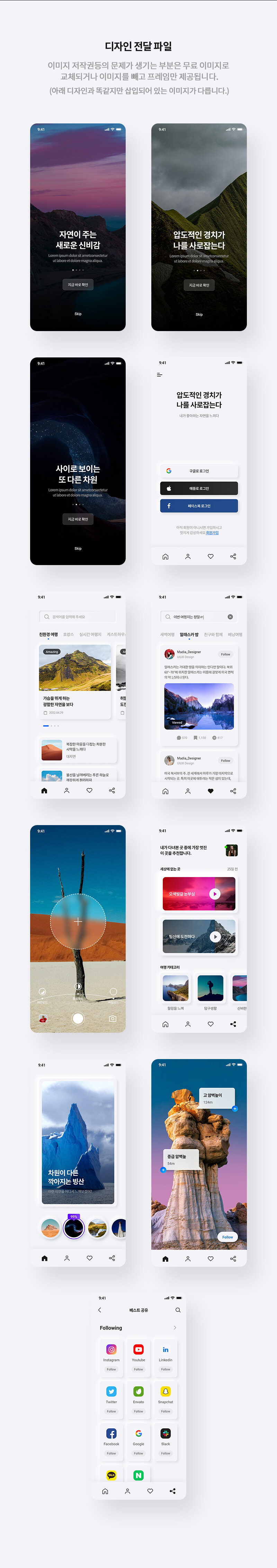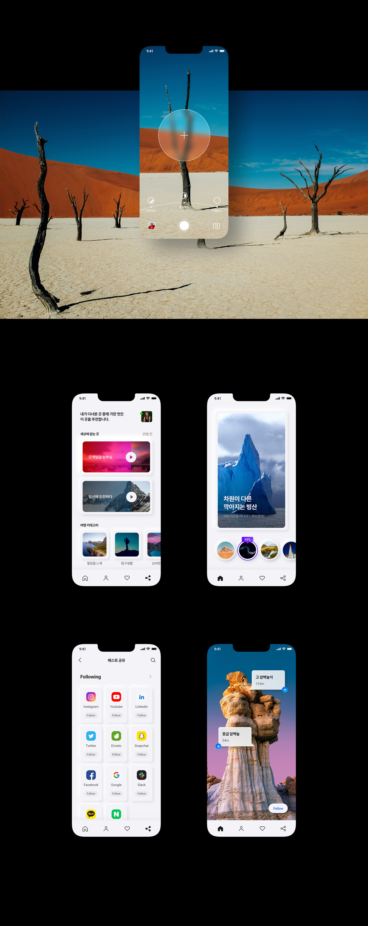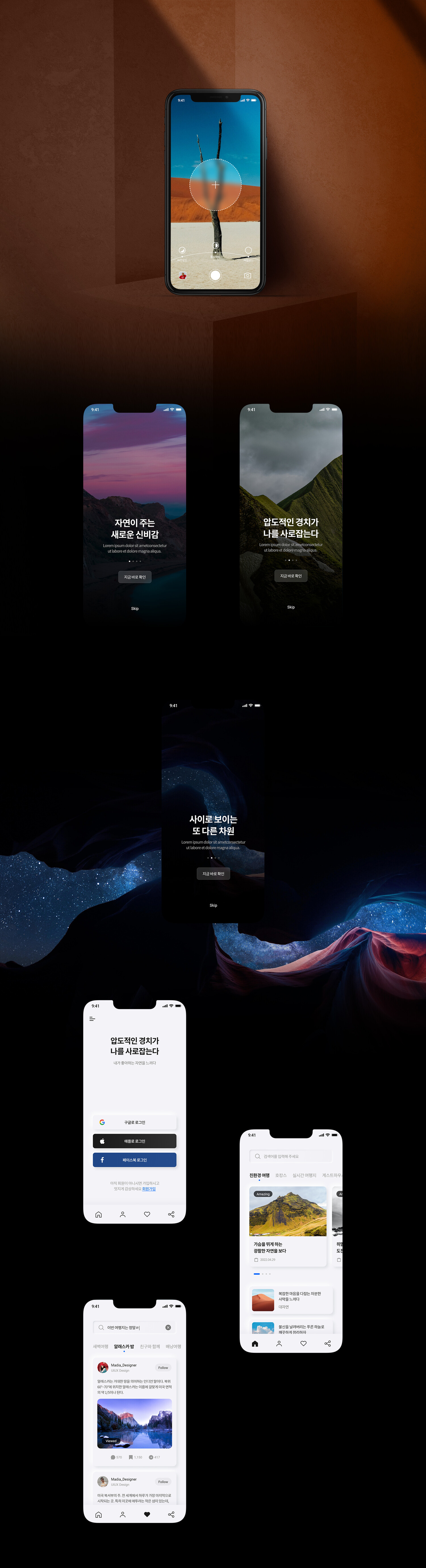 자연의 다양한 형태를 입체적인 뉴모피즘 디자인을 접목하여 각각의 이미지를 부각 시키고자 진행한 디자인이 특징이다.