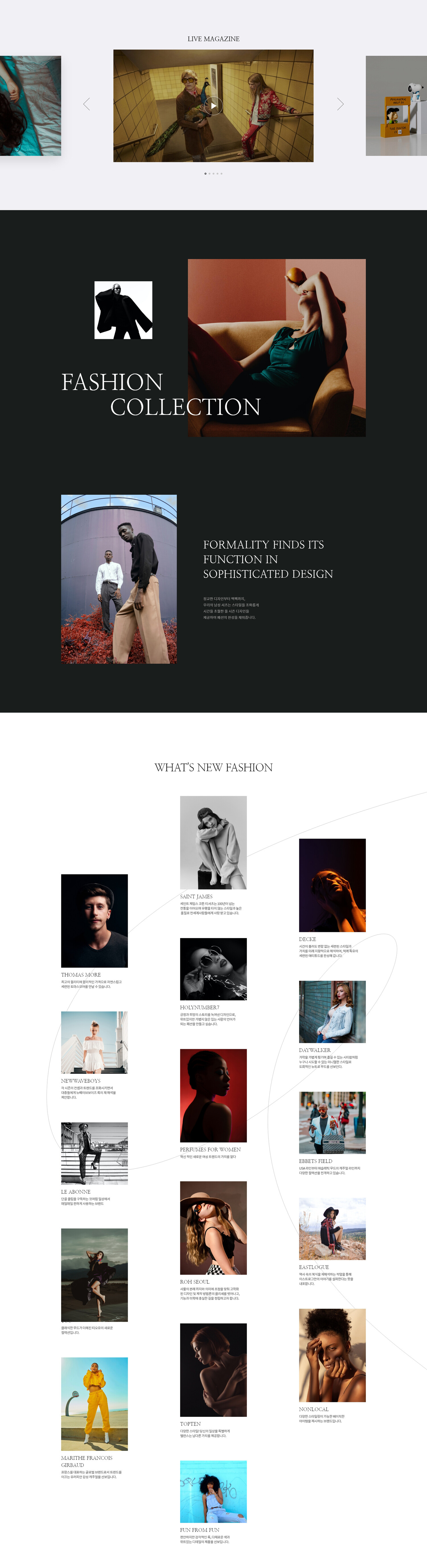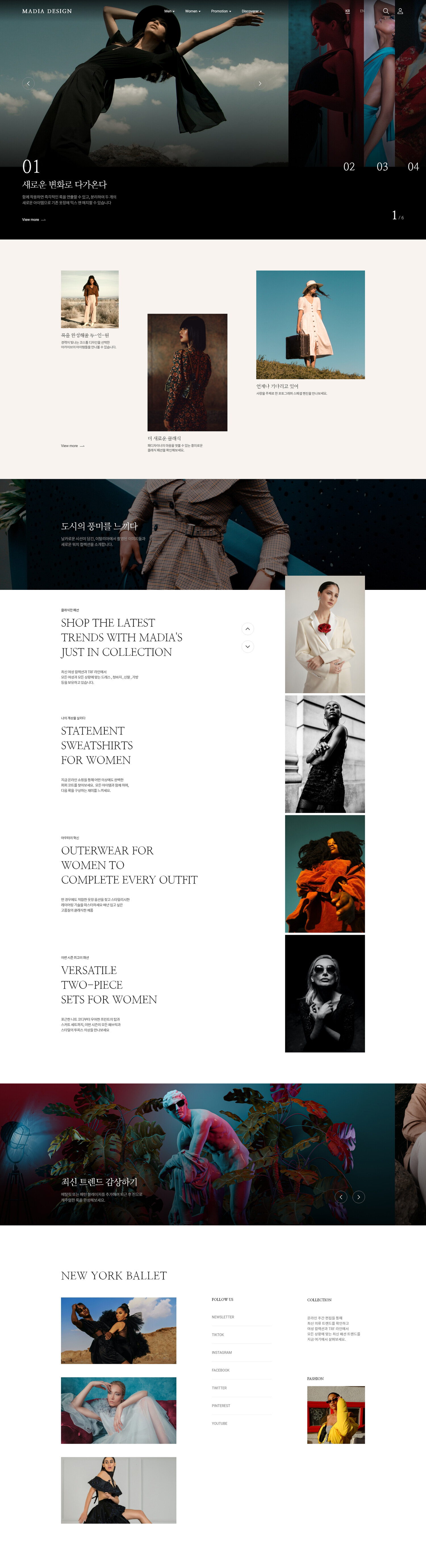 메인 빌보드는 반응형 하단 서브는 저해상도를 고려한 매거진 스러운 웹디자인과 역동적인 인터렉션이 특징