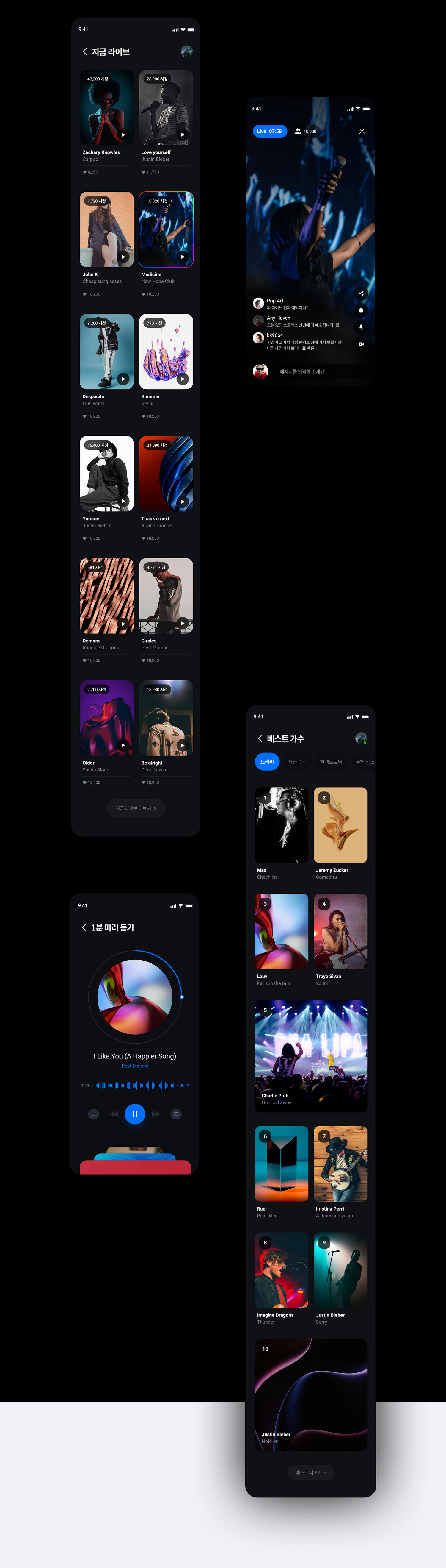 뮤직비디오의 화려한 컬러 톤을 베이스로 디자인 했으며 컬러를 더 욱 돋보이게 블랙 버전을 디폴트로 디자인 한 것이 특징