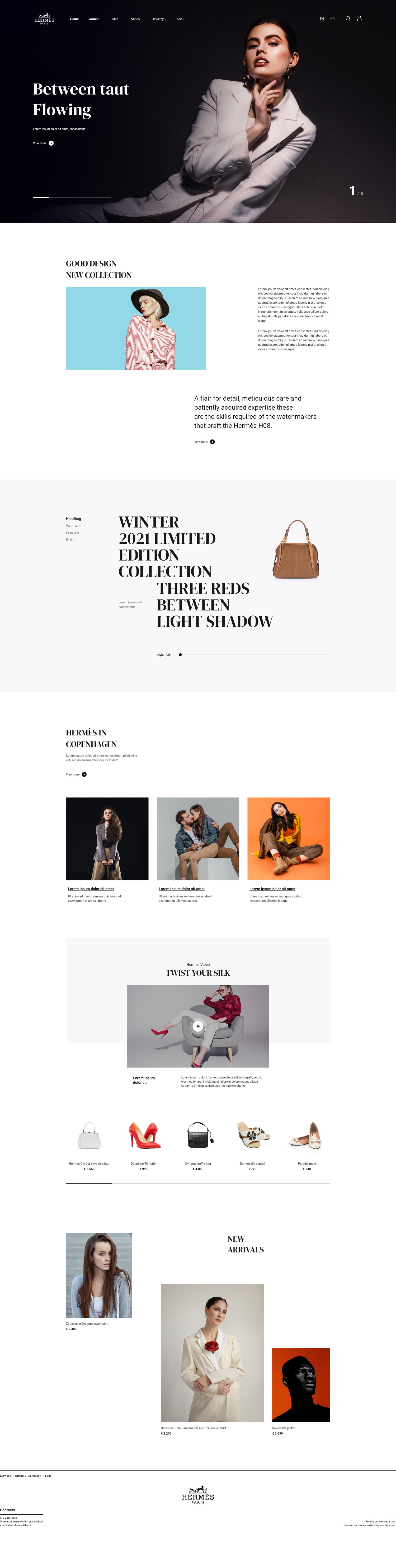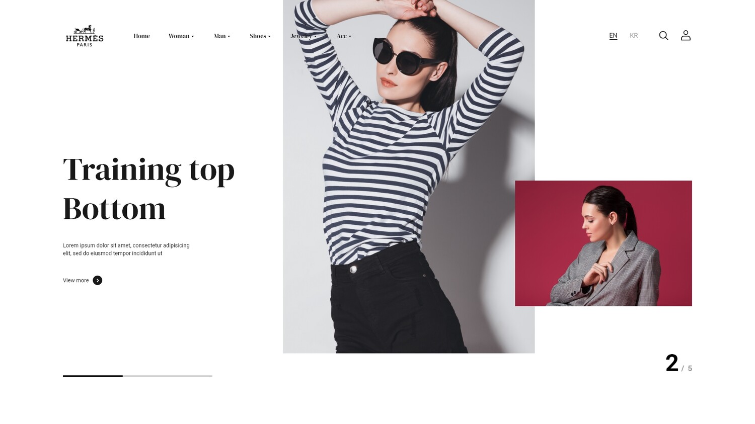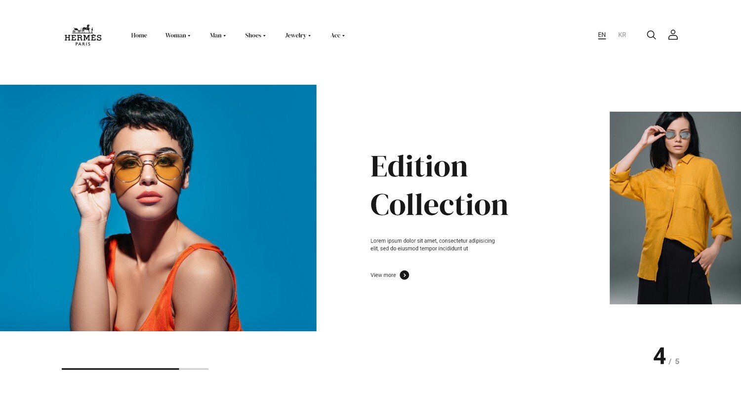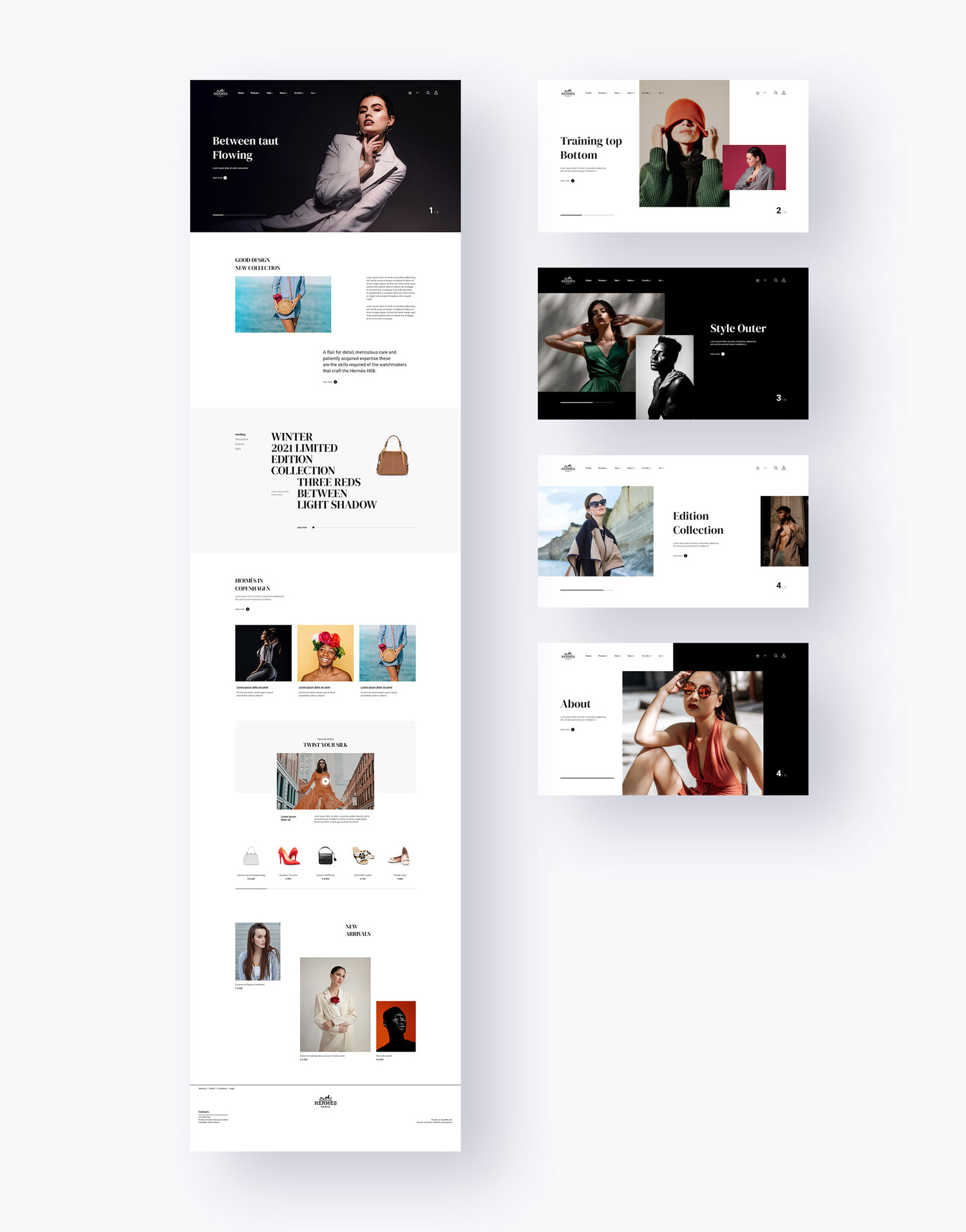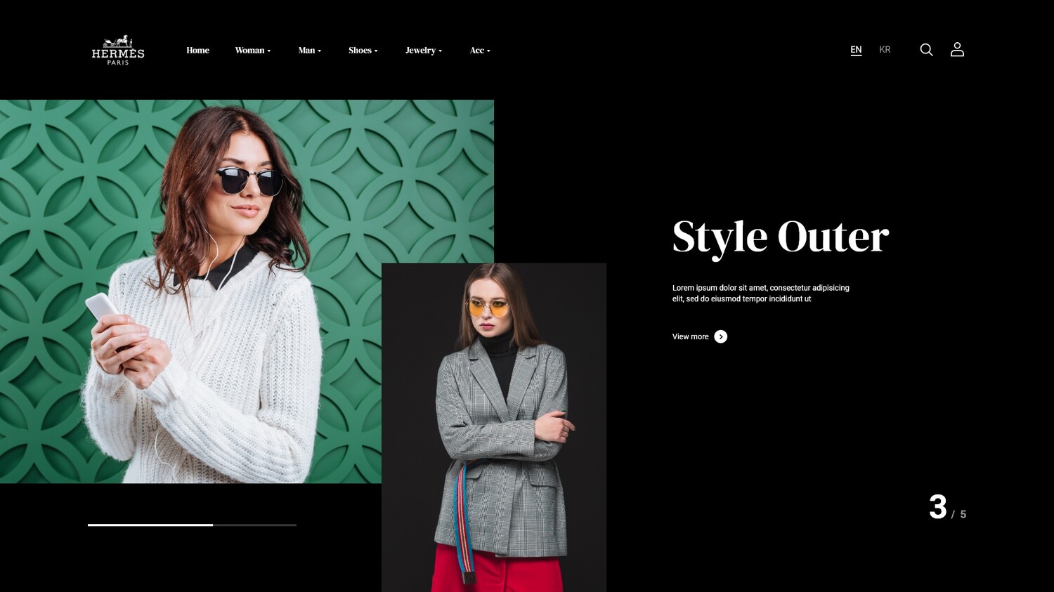 메인 빌보드 배너부터 역동적인 레이아웃의 패턴으로 다양한 레이아웃의 생생함을 전하였으며 볼드감 있는 명조 폰트로 패션의 트렌디함이 특징이다