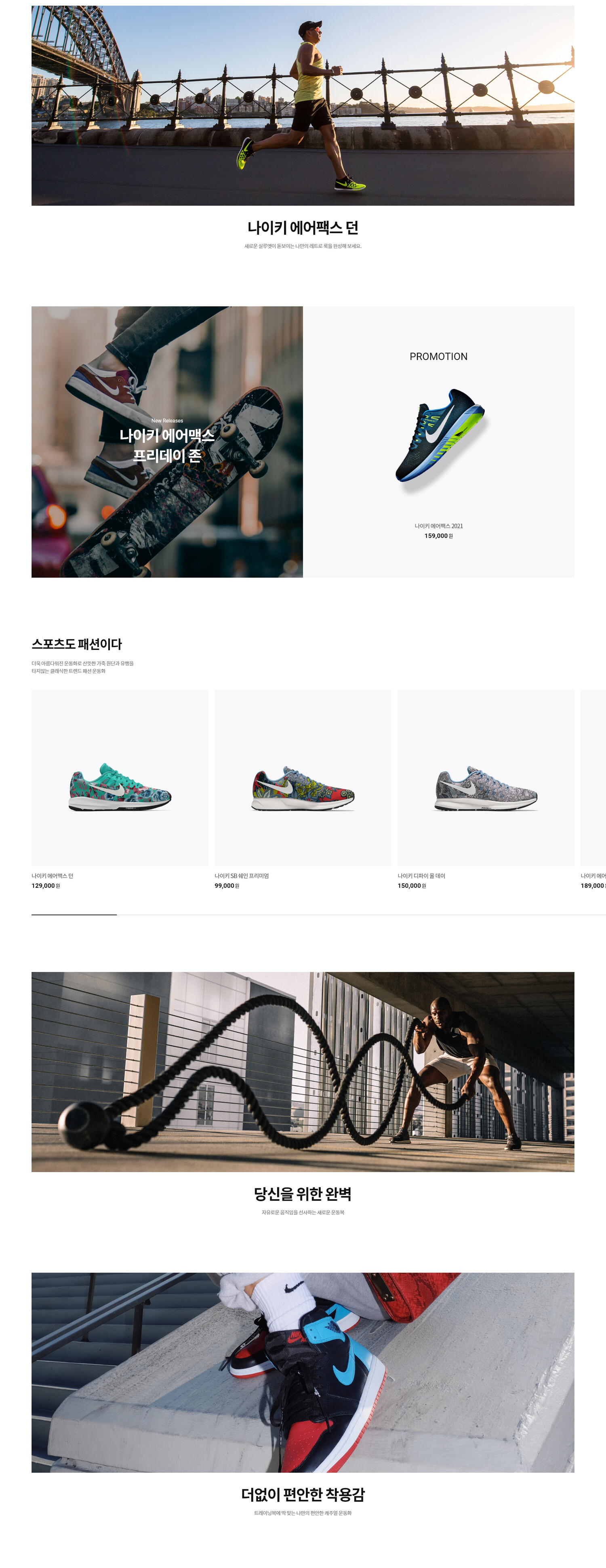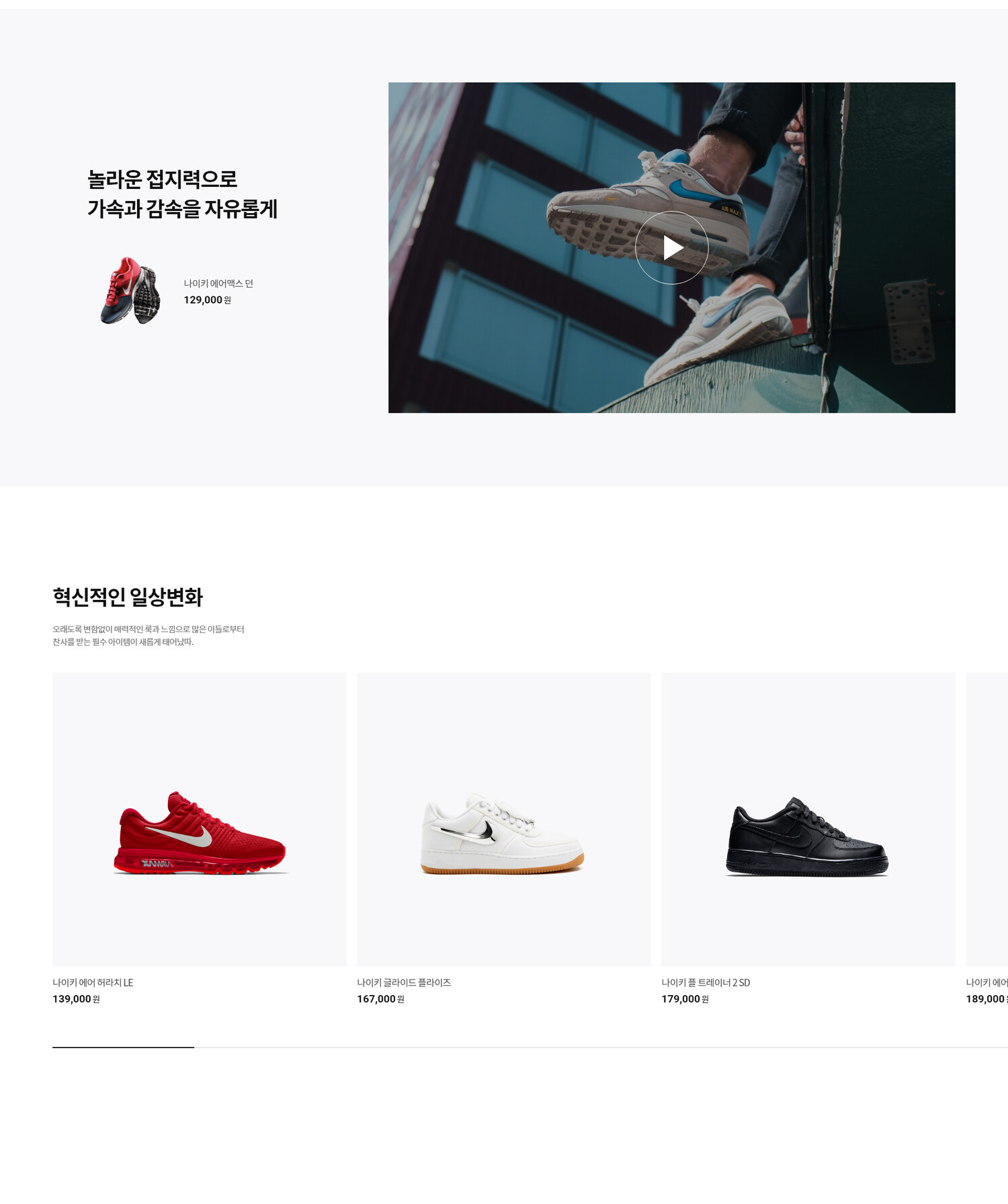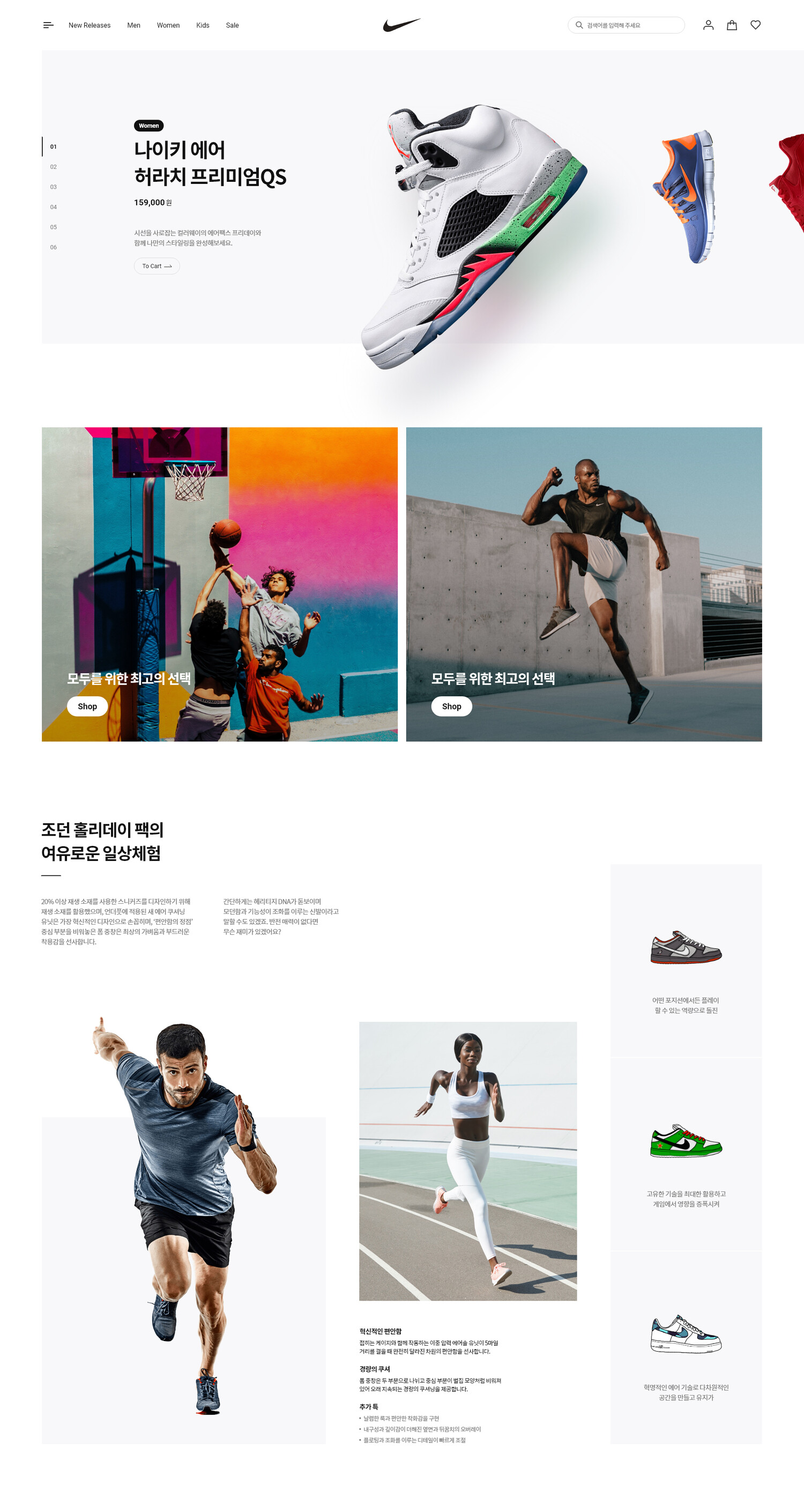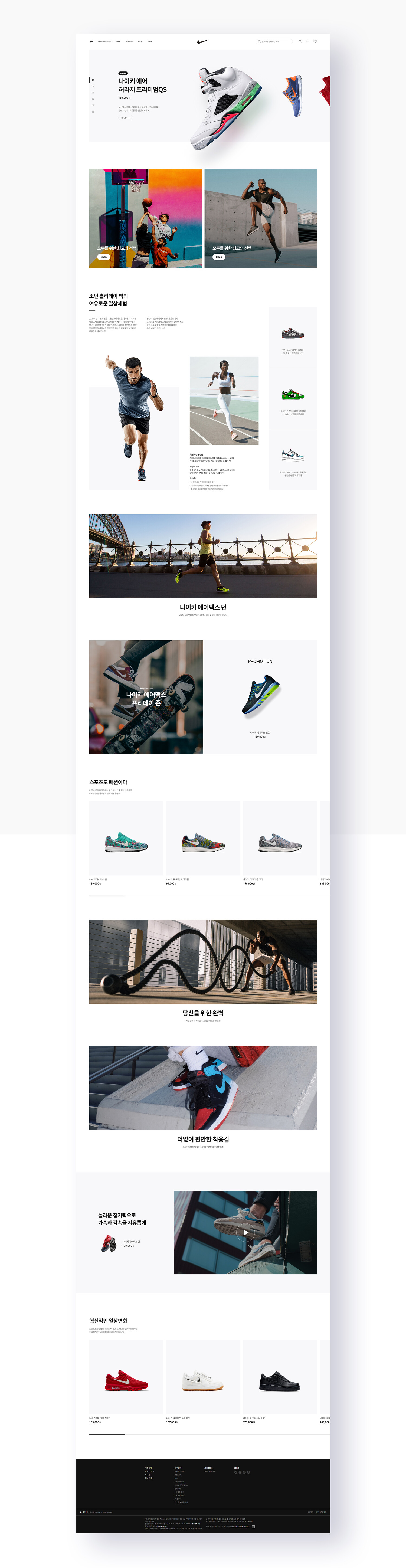 기존 나이키가 웹사이트에서 추구하는 브랜드 방향 그대로 살려 리디자인을 했으며 브랜드 가치를 알리는 단순한 레이아웃 구성과 화보 중심이었던 사이트에 상품의 비중을 올려 조금 더 다채로운 것이 특징이다.