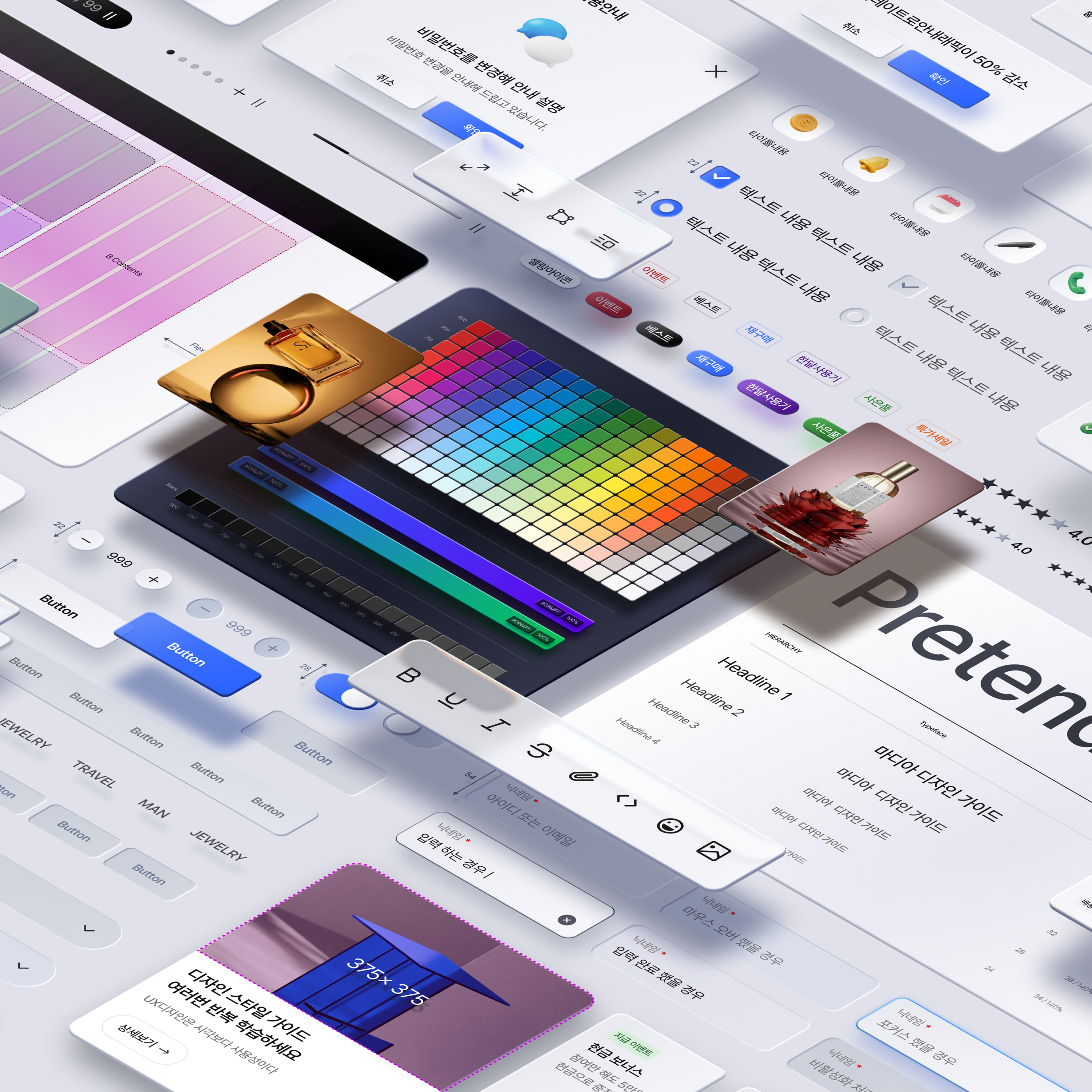 18개월 동안 제작한 피그마 UXUI 스타일 가이드 입니다. 실무에서 바로 프로젝트에 사용하셔도 무방할 정도로 상세하며 초보자 분들은 기본기를 학습하기에 아주 좋은 자료입니다.
